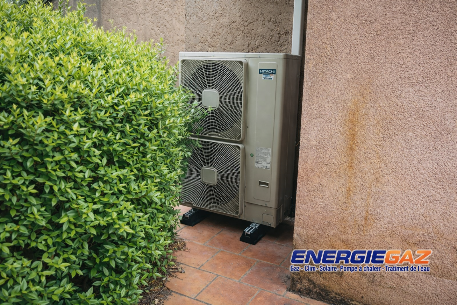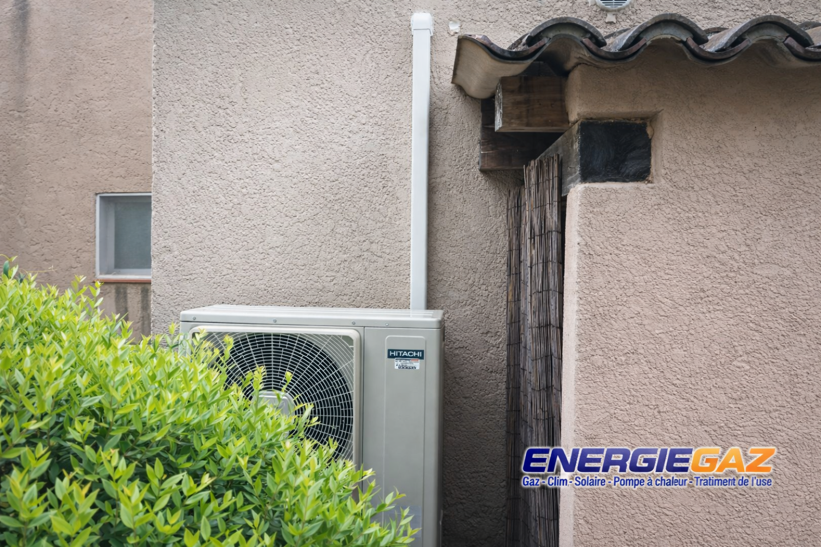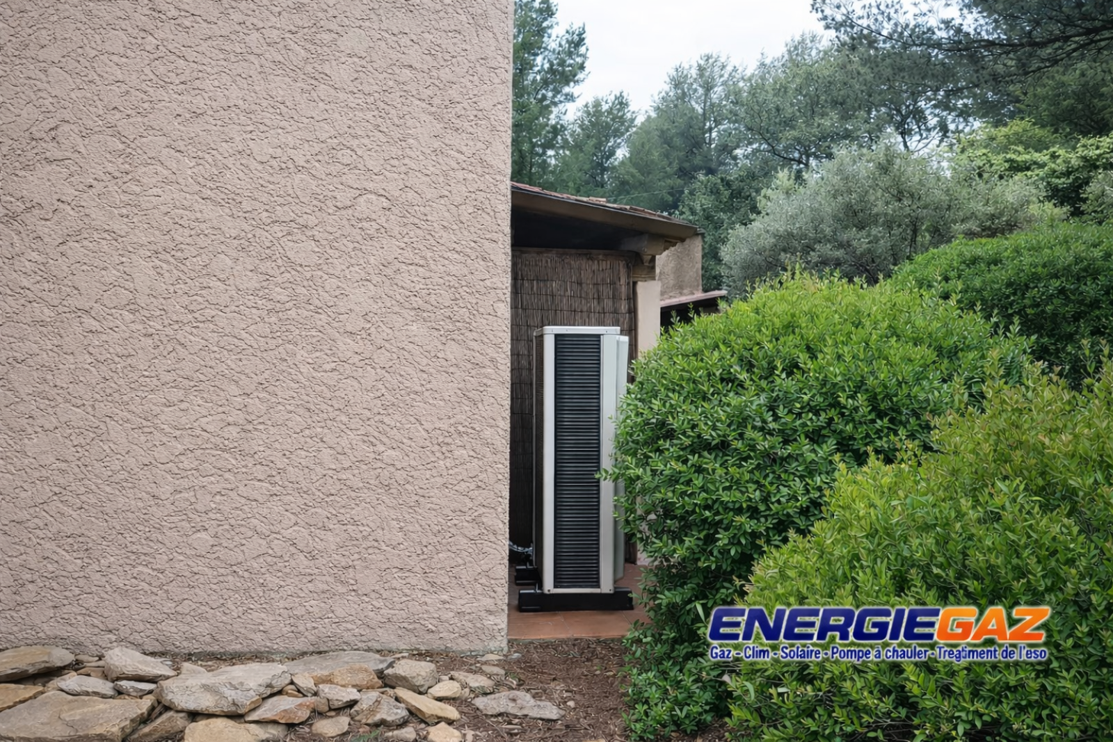 Comme vous pouvez le voir sur les photos, nos clients de La Cadière ont choisi de remplacer leur chaudière fioul par une pompe à chaleur air-eau Hitachi triphasée ''Yutaki H Combi''.